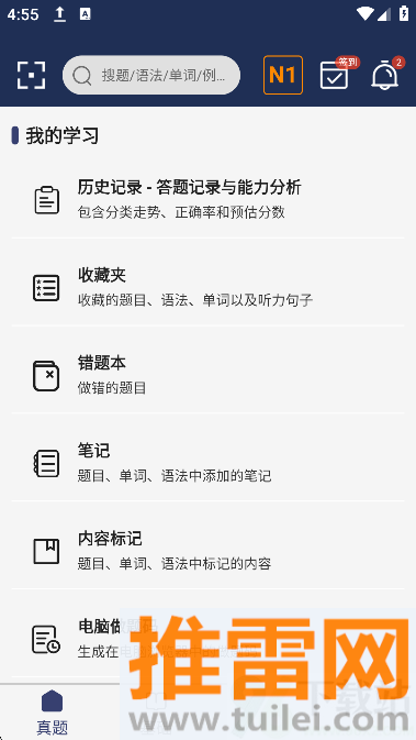 收录了2010年到2018年N1至N3级别的全部真题,支持按年份、题型或模块分开练,也能完整模拟考试流程,让你提前熟悉考场节奏。
