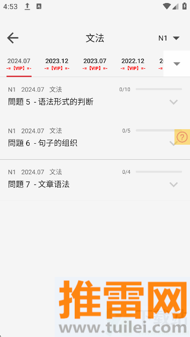 1、进入首页后点击“真题练习”选项,可以选择具体年份和级别开始刷题,系统会自动计时帮助你掌握答题节奏。