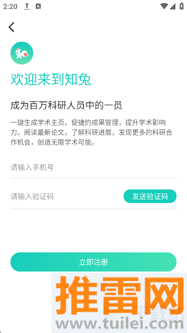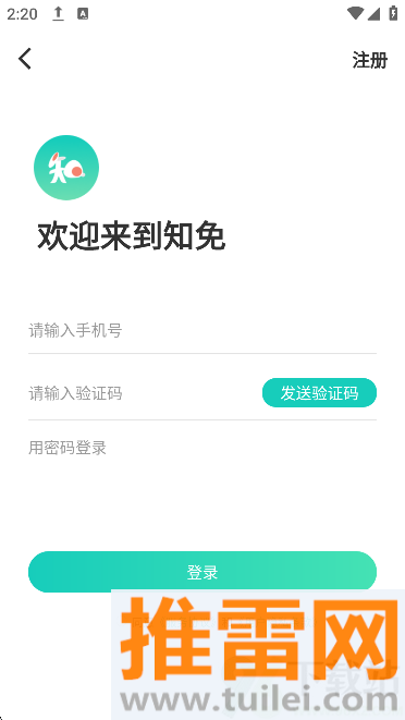 1、打开知兔app后先用手机号注册登录,这是进入平台的基础步骤,完成后就能正常使用各项功能了。