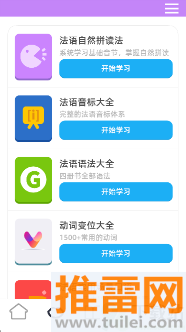 2、第一次使用建议从第一关开始,先完成法语字母的学习和跟读练习,打好发音基础。