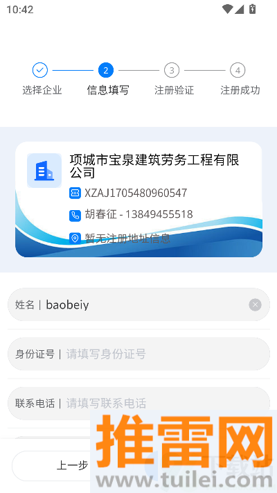 4、确认单位无误后进入信息填写环节,如实录入个人姓名、身份证号、联系方式等基本资料,核对清楚后点击提交完成注册流程。
