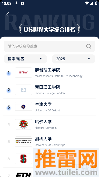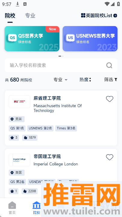 打开就能看各国大学的具体情况,包括专业设置、录取条件和最新排名,信息更新快,不用自己挨个去搜。