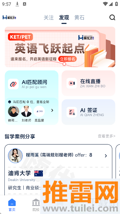 嗨优才app是北京银蕨教育科技集团推出的一款专为打算出国留学的朋友打造的实用工具,不用再到处翻官网、加一堆微信群,这儿就把你能想到的留学事儿都拢一块儿了,从选学校、看排名,到准备材料、办签证,甚至跟已经在国外读书的学生聊天取经,都能在手机上搞定,平台不光信息全,更新也及时,像美国、英国这些热门地儿的院校动态随时能查,最关键是服务挺贴心,不是那种冷冰冰扔一堆资料就完事的模式,而是真有人帮你一步步走,还能根据你的情况推荐合适的方案,让人感觉心里有底。