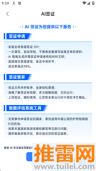 内置智能辅助功能,能自动生成签证所需表格和材料清单,减少出错,提高办理效率。