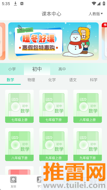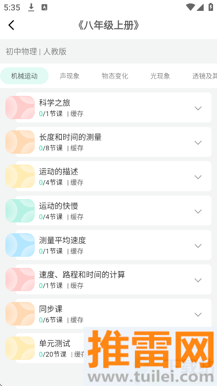 3、选完学段会进到主页面,里面有按课本章节排列的课程视频,可以配合学校进度一节一节跟着学。