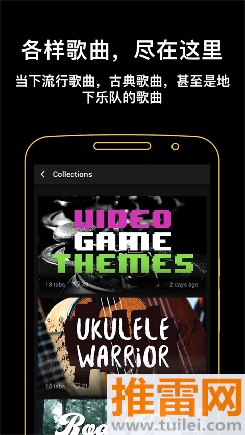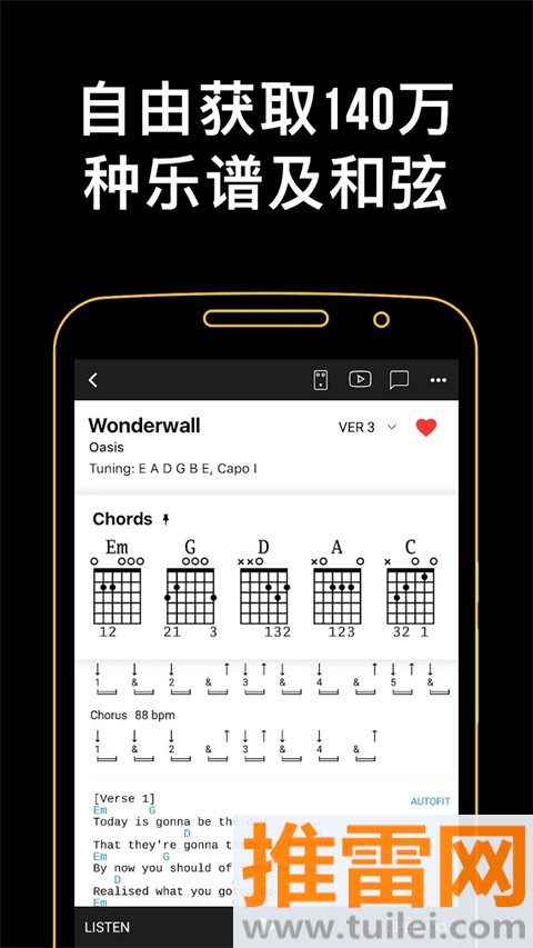 有超过八十万首歌的和弦谱和歌词,不管你想弹什么歌都能在这里找到。