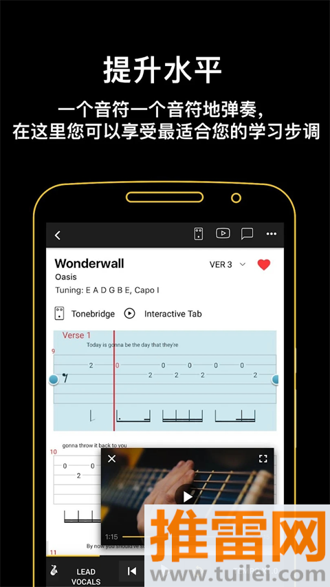 2、内置了专业的吉他调音器和节拍器,帮你把音调准,把节奏弹稳,都是练琴必备的工具。