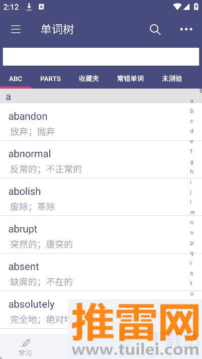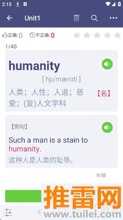 3、学完一轮可以马上进入测验环节,检测记得牢不牢,错的单词会被自动收进生词本,方便回头再练。