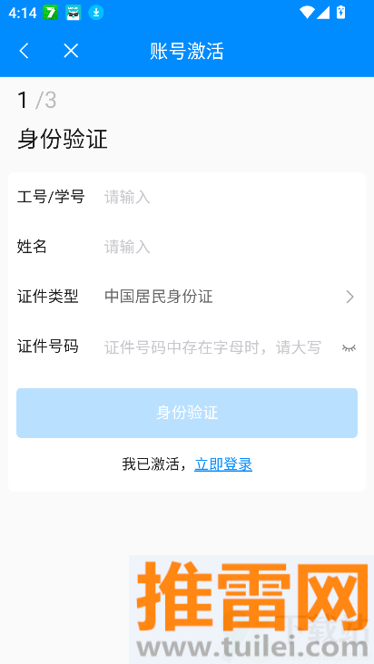 4、输入对应密码并确认登录,若账号未激活需先完成身份验证流程,按提示填写真实姓名和证件信息。