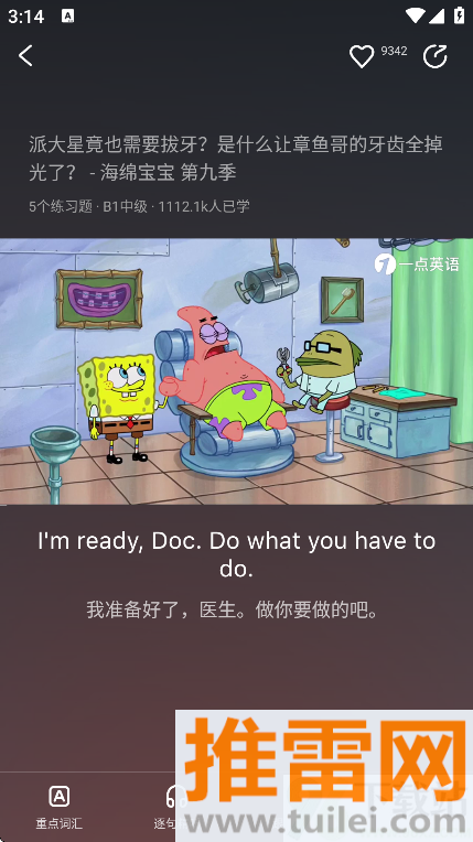 每个视频都配了中英双语字幕,点哪个词就能查哪个词的意思,还能反复听句子,练耳朵反应速度。