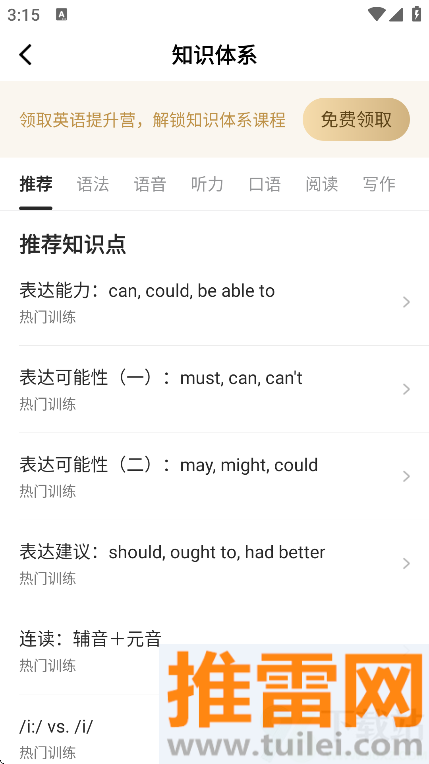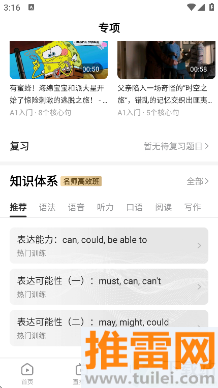 5、除了刷视频,也能去专项学习区系统学语法、背单词或者练口语,进度自己掌握,想快想慢都行。