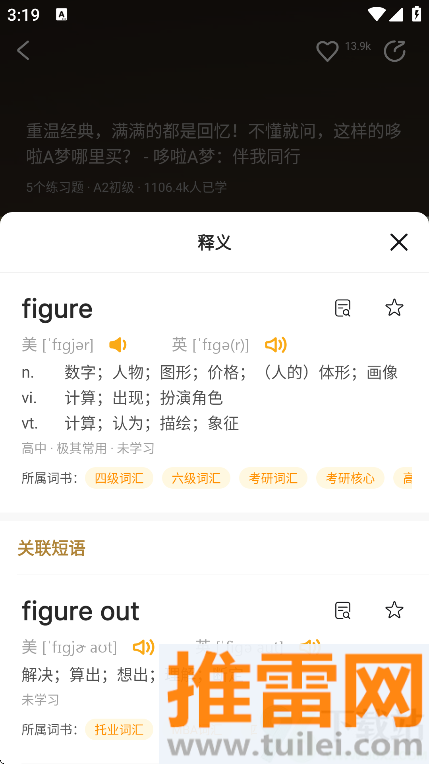 学过的单词会按你的记忆情况排复习时间,啥时候该忘了就提醒你再看一眼,记得更牢。