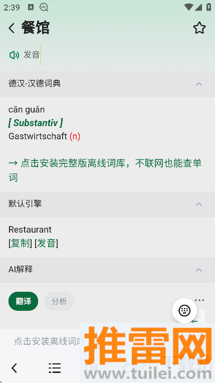 2、首次使用建议进入设置页面下载完整离线词库,这样以后在地铁、飞机等没有网络的地方也能照常查词不受影响。