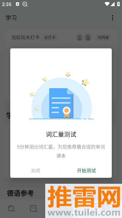 5、可以在学习模块中启用同桌打卡功能,和朋友互相监督每日背词进度,增加坚持学下去的动力和氛围感。