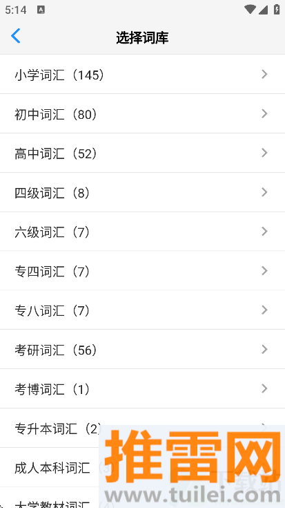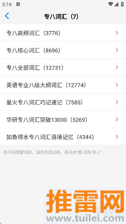 3、根据自己的目标选择对应词库,比如专四、专八、考研、雅思这些,选完系统会自动从你的薄弱点开始推单词。