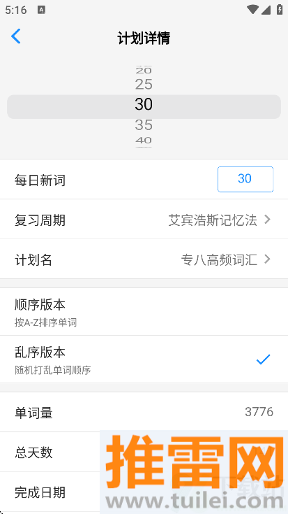 4、定一个每天要背的数量,比如20个或30个,软件会按照记忆规律安排新词和复习,不会让你一下子被压垮。