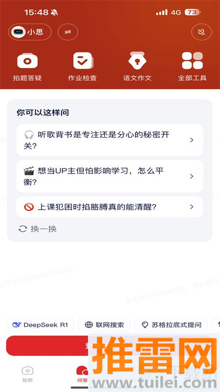 小思AI是广州九章未来网络科技公司专门为学生群体打造的一个学习帮手,不搞花里胡哨的套路,主打一个实在,用起来不卡顿,打开就能问问题,不管是数学算不明白还是作文没思路,直接打字或者拍照上传就行,后台连的是专门优化过的DeepSeek R1模型,不是随便套个聊天机器人充数,能一步步带着你理清思路,尤其适合那些总觉得自己“听懂了但不会做”的同学,关键是这玩意儿不收钱,连广告都少,学生自己用也不用担心乱扣费,想找个安静踏实的学习工具,它确实能顶上用场。