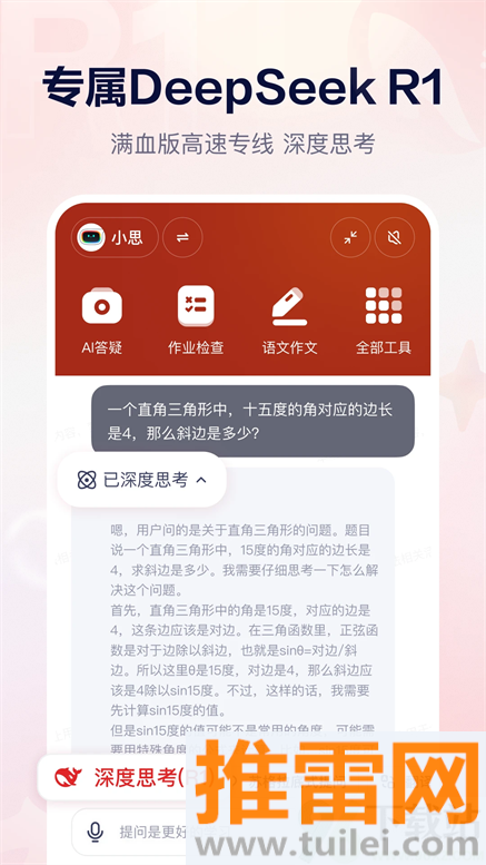 1、打开小思AI app后,在首页找到拍照答疑入口,对准不会的题目对准拍下,等待几秒就能看到解析过程和答案。