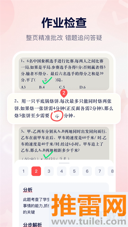 完成纸质作业后用手机一扫,整页内容立刻批阅完成,错误地方标得清清楚楚,还能自动归类知识点盲区。