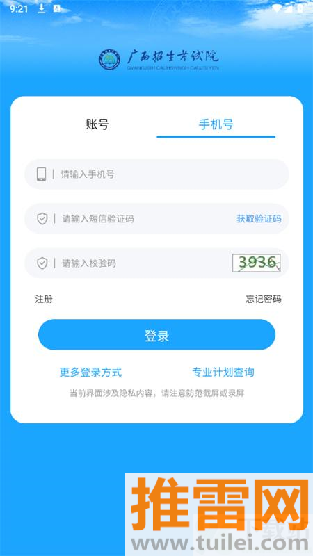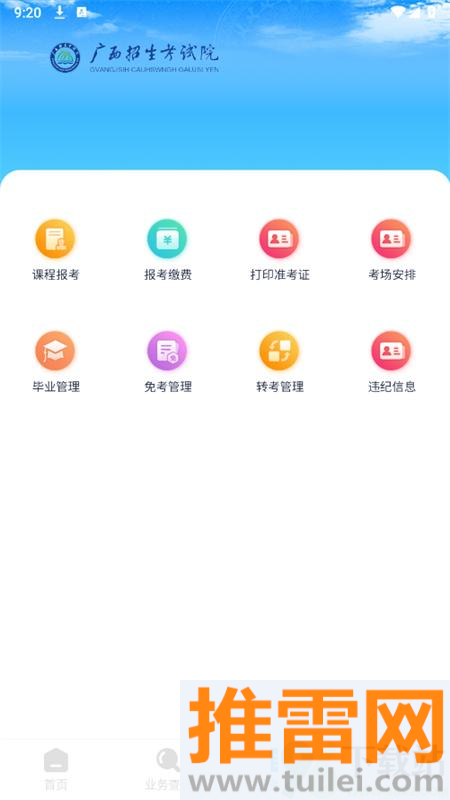 1、先在正规渠道下载广西自考app官方版本,安装完成后打开应用,注意认准图标和名称,别下错了山寨软件。