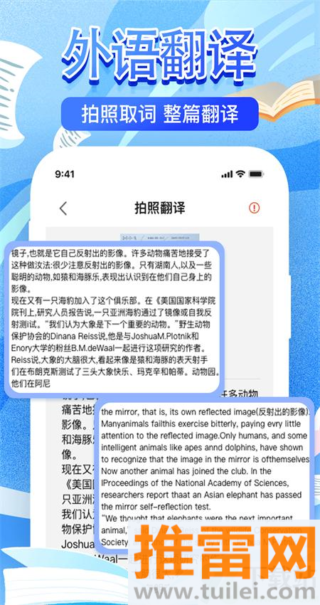 遇到英文段落或者短文看不懂,直接拍照上传,整篇内容马上转成中文,理解起来轻松不少。