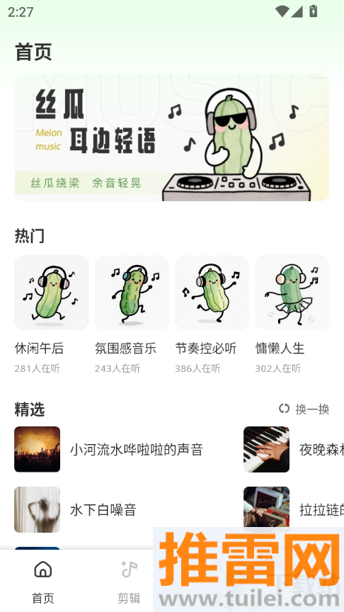 1、打开丝瓜sg软件后在首页可以看到滚动推荐的热门歌曲,直接点击即可开始播放,无需额外操作。