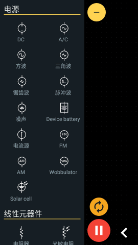 3、然后选择电路组件进行添加,添加时右侧会实时进行电路模拟