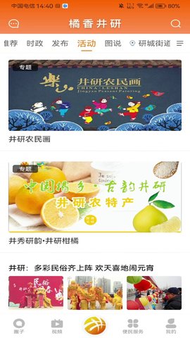 用户可以通过橘香井研了解到各类大小事情,无论是国家大事还是身边小事,都能够轻松获取。用户可以通过橘香井研了解到国家的最新动态,了解到社区活动的相关信息,以及了解到自己身边的各类新闻和事件。橘香井研还提供了丰富的民生服务,用户可以通过平台获取到柴米油盐酱醋茶等生活所需的各类信息和服务。用户可以了解到最新的商品价格,获取到购物优惠信息,还可以通过平台预约家政服务、购买生活用品等。