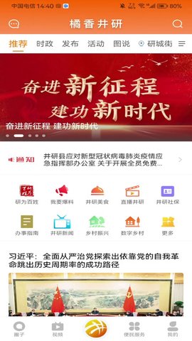 橘香井研是井研县融媒体中心打造的一款智慧生活服务平台,它集新闻资讯、TV直播、民生服务、问政互动等功能于一体。通过橘香井研,井研人可以轻松获取各类新闻资讯,包括国内外重要新闻、社会热点、科技进展等内容。