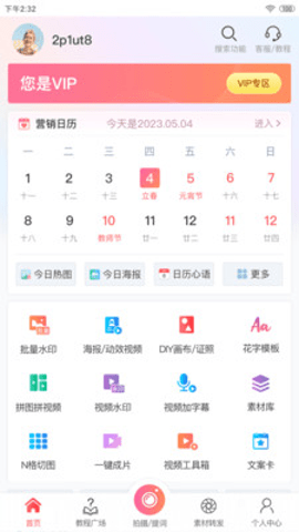1.APP集海报拼图、视频拼图、营销日历等功能于一体。