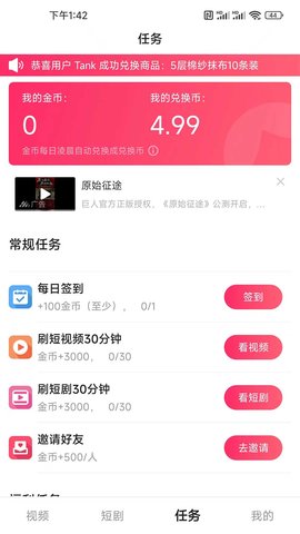 锐新APP是一款集短视频、短剧资源以及互动娱乐于一体的软件,为用户提供丰富多样的娱乐体验,闲暇时刷短视频,还是追剧,锐新APP都能满足你的需求。通过完成任务赚取金币,用户还可以免费兑换付费短剧,享受更多优质内容。