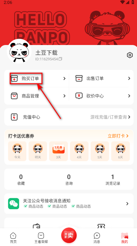 2、在订单列表中选择"购买订单"分类,筛选需要处理的交易记录