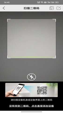 2、将手机扫描框对准设备二维码,若无二维码可点击"直接添加设备"。