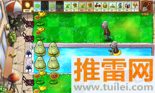 3、水陆双栖的战斗场景设计,泳池区域会延缓僵尸移动速度,合理利用地形优势可以大幅提升防御效率。