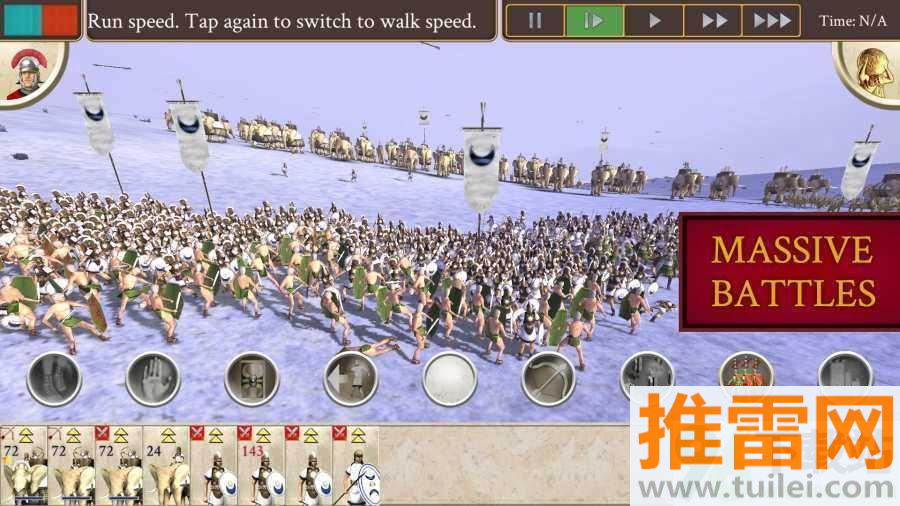 3、指挥你的军团在广袤的陆地上作战,利用改良的攻城器械摧毁敌方城防。