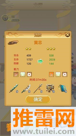 2、武将突破系统让每位角色都能突破资质限制,通过淬炼经脉提升战力天花板。