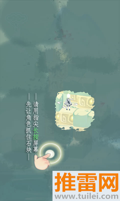 1、玩家以小和尚身份在水墨园林中穿行,通过推拉石块、攀爬屋檐、跳跃荷叶等方式解开路径谜题。