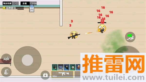 5、通过右下角虚拟摇杆控制角色移动,同时滑动屏幕调整枪械射击方向,松手自动开火。