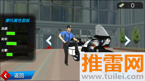 2、在车库里,你可以左右滑动挑选一辆自己喜欢的警用摩托车。