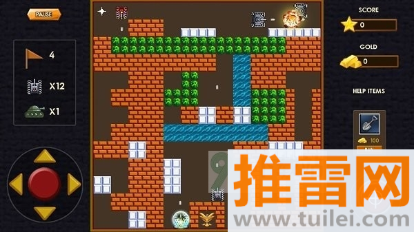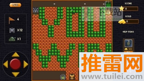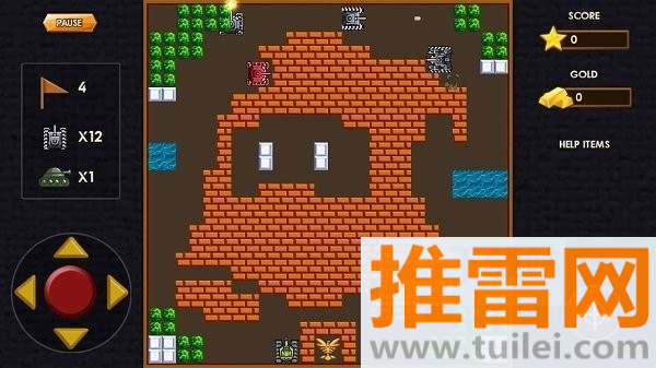 1、进入游戏后,使用屏幕上的虚拟交叉键控制坦克的移动。
