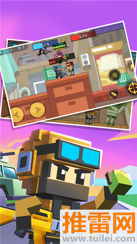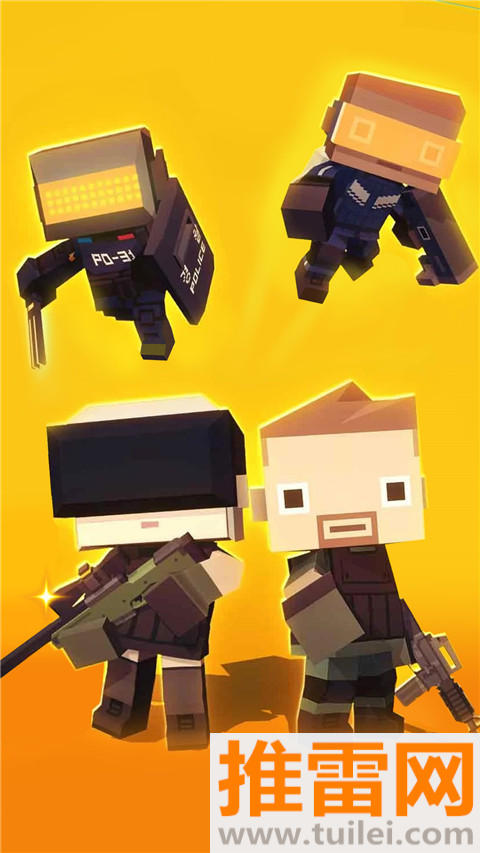 枪战行动重生不是那种花里胡哨靠皮肤圈钱的射击游戏,它用最朴实的像素块搭出一个子弹横飞的战场——你操控的角色没多少花招,但跳得灵活、跑得利索,手里那把AK一梭子扫出去,敌人直接碎成方块,游戏分竞技和娱乐两种路子:想硬刚就进竞技模式,单排、组队、爆破随便挑,节奏快、压力大,一不留神就被偷袭,想放松就切娱乐模式,打打僵尸、捡捡道具,甚至开着像素坦克在地图上横冲直撞,武器库塞得满满当当,从手枪到转管机枪,连狙击枪都能一枪爆头,而且不用手动开火,瞄准就自动射击,省下的手指专门用来跳、蹲、扔雷,地图大得能绕山跑一圈,还有死亡区逼你往中心缩,二十多人同屏乱战,谁活到最后谁就是爷,玩这游戏,拼的是反应,靠的是走位,赢了爽,输了只想再来一局。