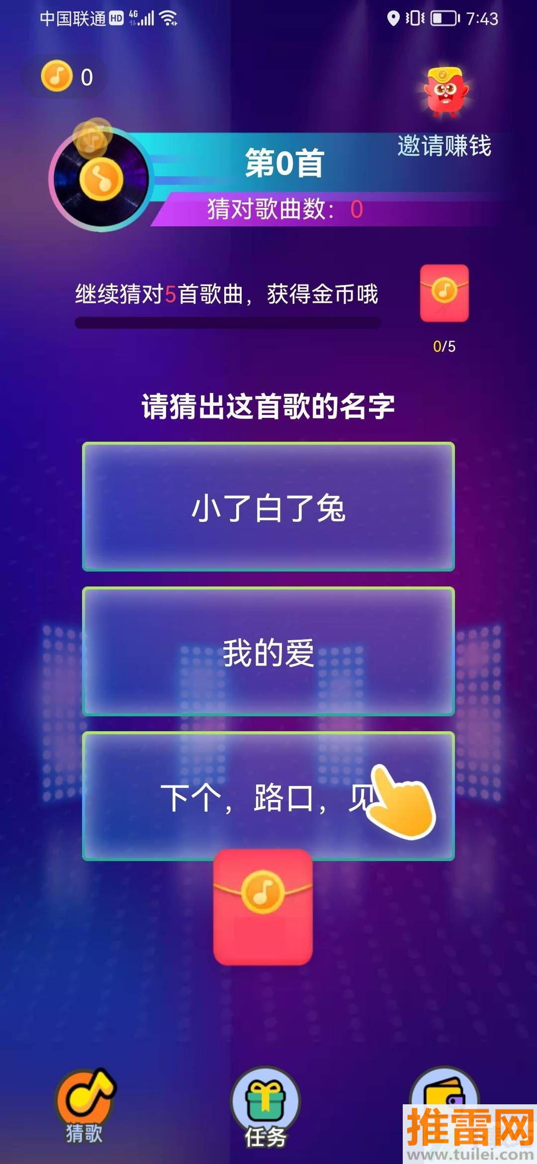 1、下载并打开猜歌赢财神官方版,点击“开始挑战”进入主游戏界面。