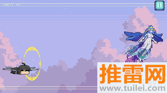 3、点击屏幕左侧下半部分,角色就会向下移动,用来闪避空中障碍或触碰低位置的加分点。