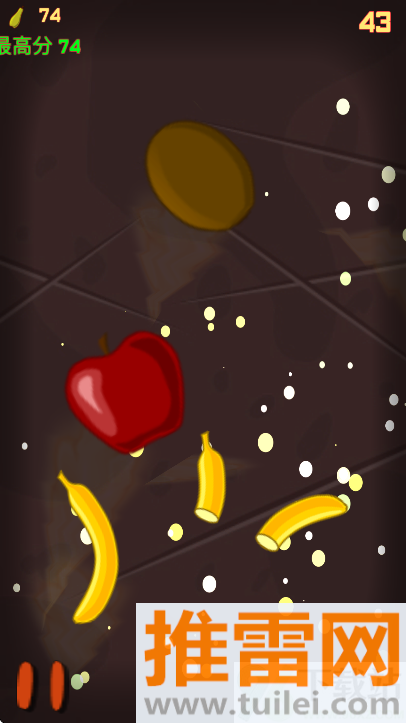 2、水果从屏幕底部或四周随机弹出,手指直接在屏幕上滑动,轨迹经过水果就算切中,切中会有裂开动画和音效反馈。