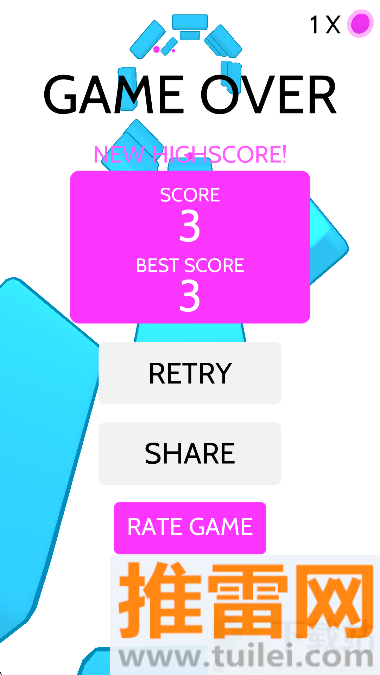 5、一局结束后可以点retry再来一局,或者点share把分数传出去,看看有没有人愿意接招比高低。