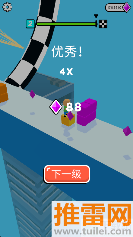 4、连续碰到多个可叠加方块时,可以连续跳跃进行累加,跳得越准,叠得越高,但注意别跳过头掉下去。
