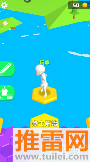 1、玩家一进游戏就直接开干,选好角色点开始就随机匹配进房间,二十个人站一块晃荡的平台上,谁先掉下去谁认栽,活到最后的自动拿下第一名,系统当场发奖励。