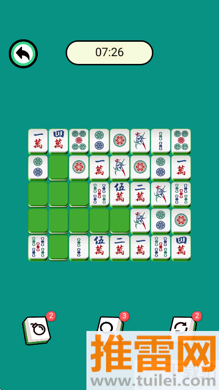 3、不用非得挨在一起才能消,比如一条线上两个红中,中间的牌已经清空了,哪怕隔了两个空位,也能直接点掉它们。