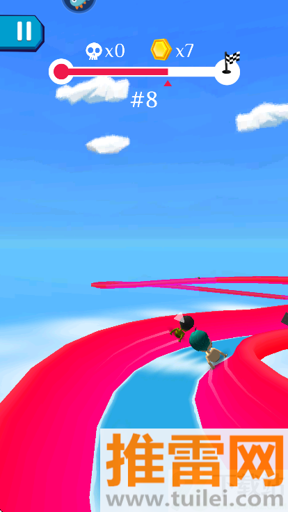2、滑行的时候能感觉到水流推着你走,拐弯有惯性,冲下去有加速感,不是那种干巴巴往前移。碰到水墙反弹也好,下坡节奏对了飞起来也真实,物理效果做得挺讲究。
