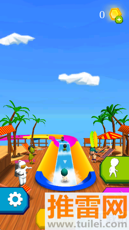 1、整个游戏看着特别清爽,颜色亮堂堂的,没有那种乱糟糟的感觉。滑梯边上有棕榈树、小房子、喷泉啥的,像真在度假一样。角色也都圆滚滚的,动作滑稽,光看着就想笑。